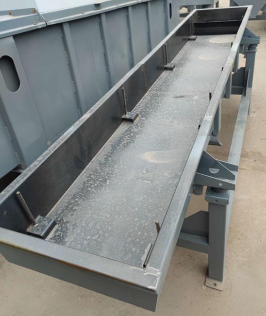 振動輸送機(jī)一般由振源—振動電機(jī)或激振器、承載體、減振支承、承載基礎(chǔ)及相關(guān)配套附件等組成。根據(jù)現(xiàn)場使用環(huán)境及輸送物料特性要求,輸送機(jī)承載體可采用不同材料分別加工成U形槽和管狀等結(jié)構(gòu)形式,并可按有無密封要求制作成敞開型或封閉型,以滿足不同工藝流程;由于設(shè)備承載體是金屬制件及潤滑點遠(yuǎn)離物料,因此,該機(jī)不僅可以輸送各種常溫、普通物料,而且可以輸送很多高溫、有毒等非常規(guī)物料;如對承載體施行特殊加工,則在輸送過程中可實現(xiàn)物料的篩選、干燥、加溫、冷卻等工藝要求。