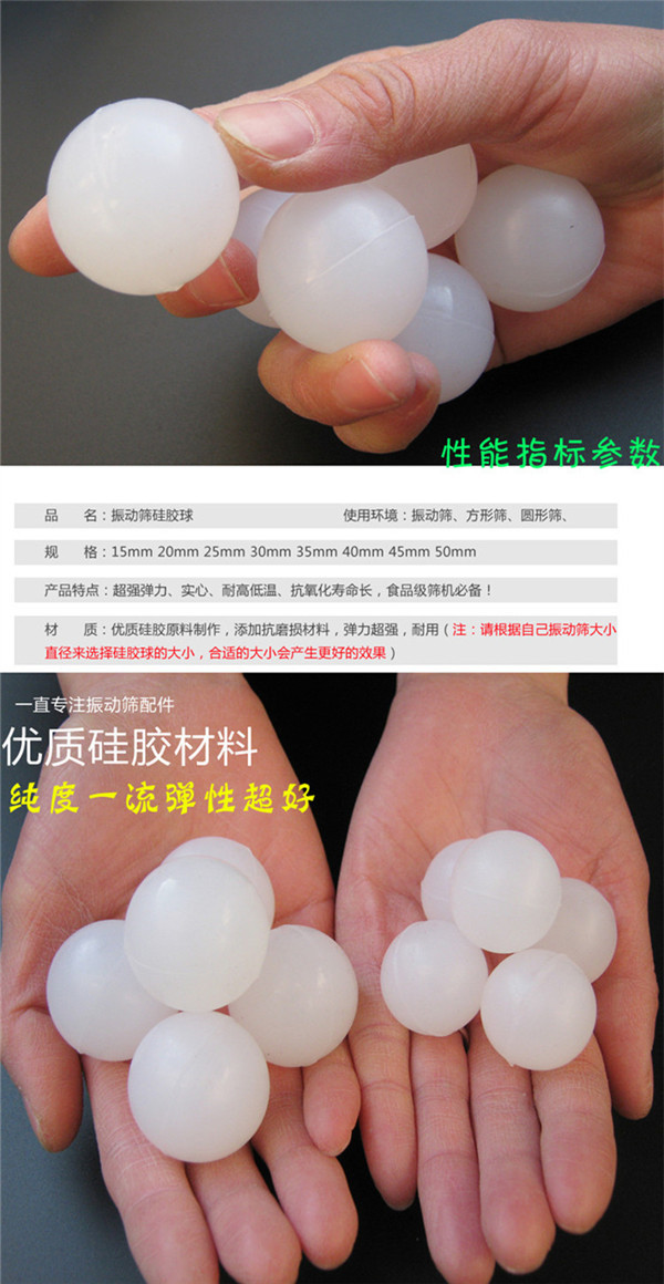振動篩彈跳球是振動篩不可缺少的部分,它是在振動篩工作的時候受沖孔板的作用力不停地上下跳動,往復(fù)地敲擊篩網(wǎng),從而實(shí)現(xiàn)清理篩網(wǎng)提高透網(wǎng)率的目的。