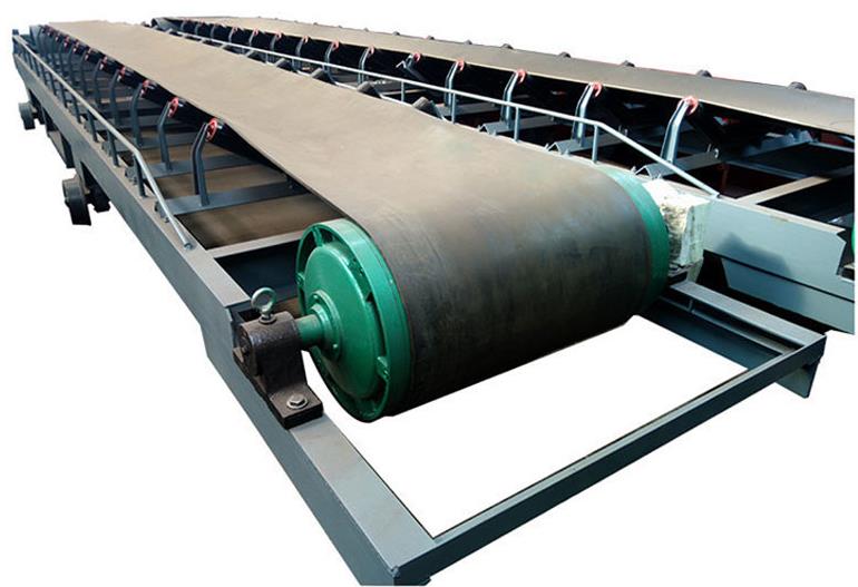 帶式輸送機主要由兩個端點滾筒及緊套其上的閉合輸送帶組成。帶動輸送帶轉動的滾筒稱為驅動滾筒(傳動滾筒);另一個僅在于改變輸送帶運動方向的滾筒稱為改向滾筒。驅動滾筒由電動機通過減速器驅動,輸送帶依靠驅動滾筒與輸送帶之間的摩擦力拖動。驅動滾筒一般都裝在卸料端,以增大牽引力,有利于拖動。物料由喂料端喂入,落在轉動的輸送帶上,依靠輸送帶摩擦帶動運送袋卸料端卸出。[