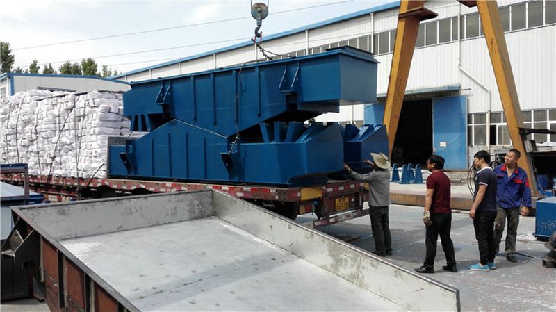 河北3臺(tái)1245直線篩客戶卸貨現(xiàn)場(chǎng)