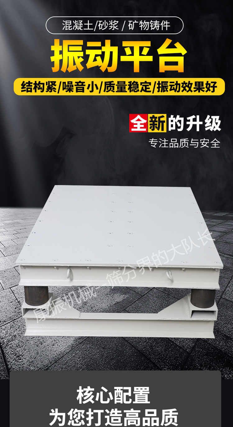 ◆大功率、大臺(tái)面;功率可大7.5kw,激振力80KN,可承載10T。