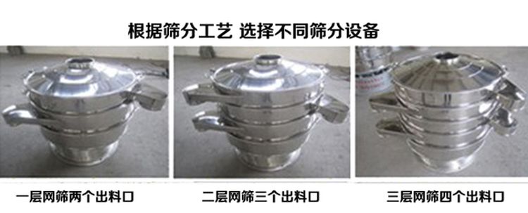 任何顆粒、粉末、粘液一定范圍內(nèi)均可篩選。篩分細(xì)至500目或0.028mm, 過濾小可至5微米。分級篩選,可篩一至五層篩網(wǎng),能同時進行二至六個等級的分選或過濾。