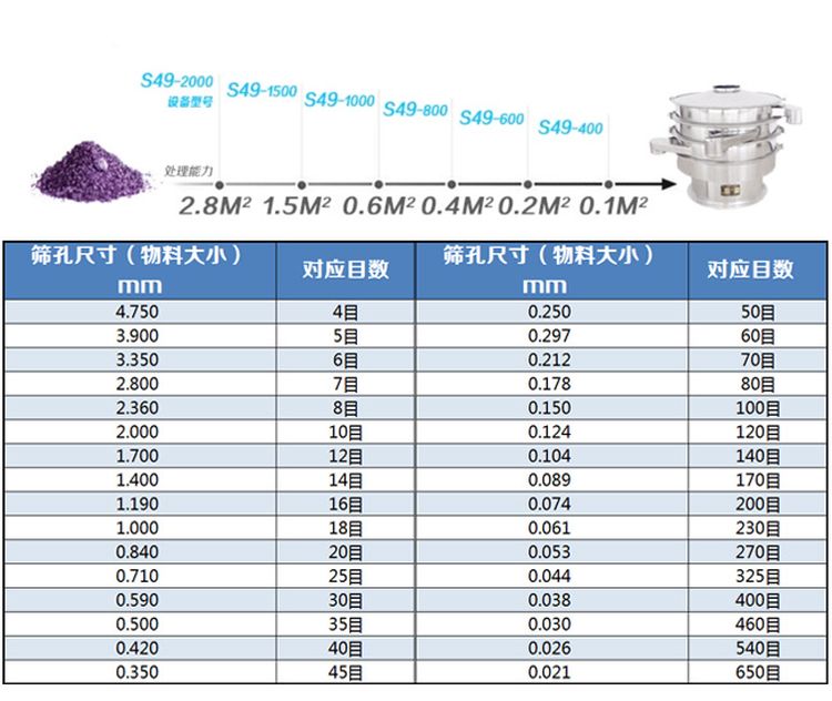 物料篩分范圍: