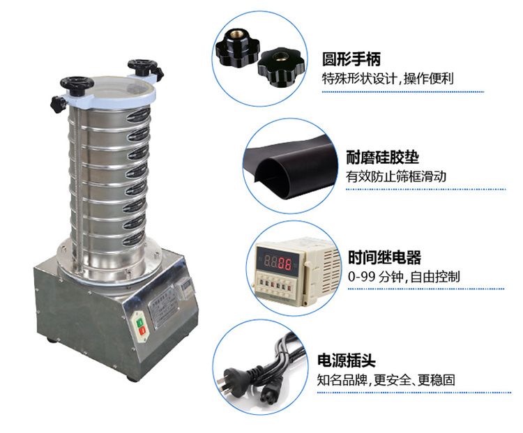 使每層試驗(yàn)篩內(nèi)只留相同粒度的物料,達(dá)到不同粒度的分離并確定此物料的粒度組成,使篩框中的物料能非常有效的起到過濾、分級、篩分目的。